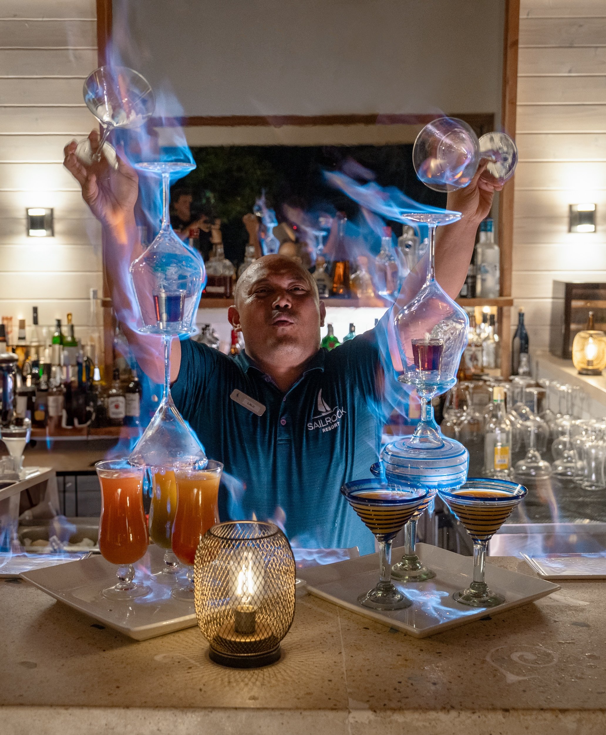 Whether sipping pre-dinner drinks or a nightcap, The Great House Bar at Sailrock Resort provides guests with an impressive selection of cocktails within a picturesque setting. Be sure to try Blue Oceans, their refreshing signature drink comprised of Bambarra Coconut Rum, Blue Curaçao, freshly squeezed lime juice, and coconut water.