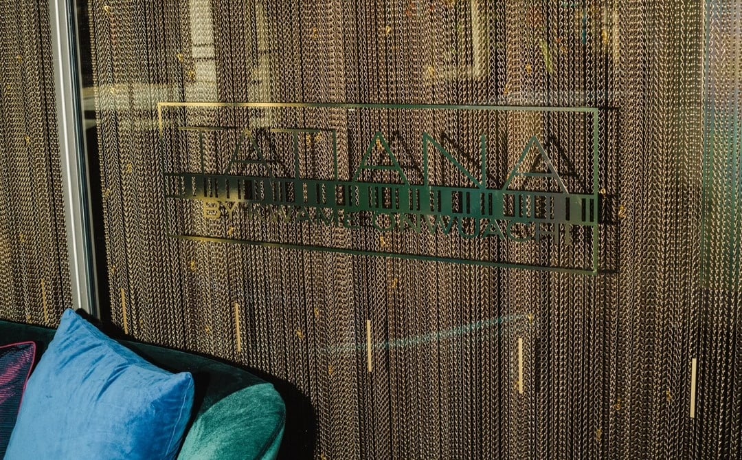 Bold elements like velvet banquettes, gold chain-link curtains, and cloud-like lighting pendants foster an atmosphere of warmth and wonder. Reggaeton, rap, and hip-hop music bump from the speakers, giving every meal an uplifting, almost club-like vibe.