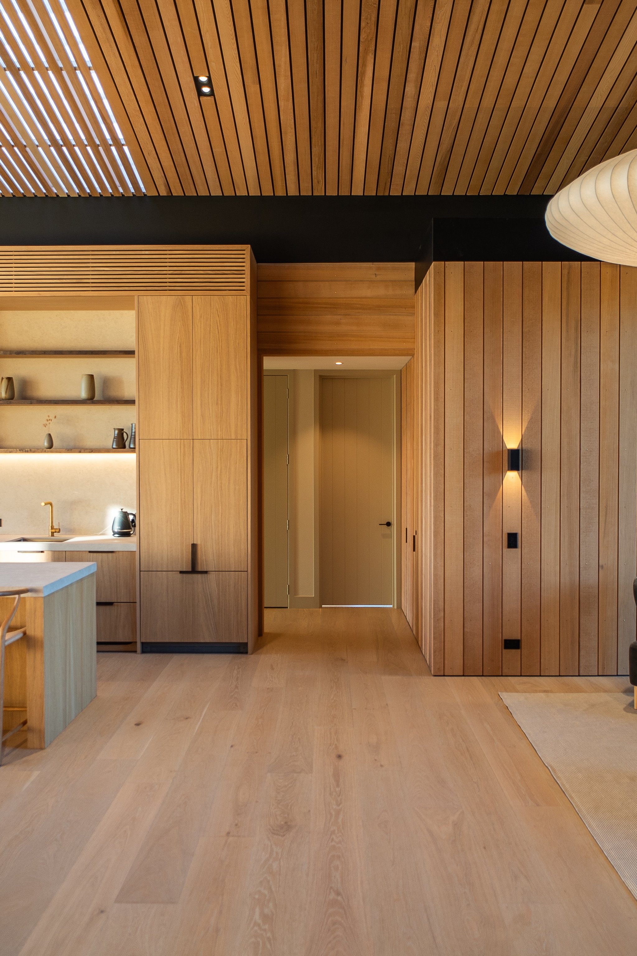 Local materials are the real showstoppers here, celebrating New Zealand’s stunning natural heritage. Indigenous kauri wood complements the refined elegance of cedar, each thoughtfully selected not just to withstand the salty breezes, but to flourish in them. "Sourcing outdoor-friendly pieces is always a challenge, but we focused on items that would stand the test of time," Kayne adds.