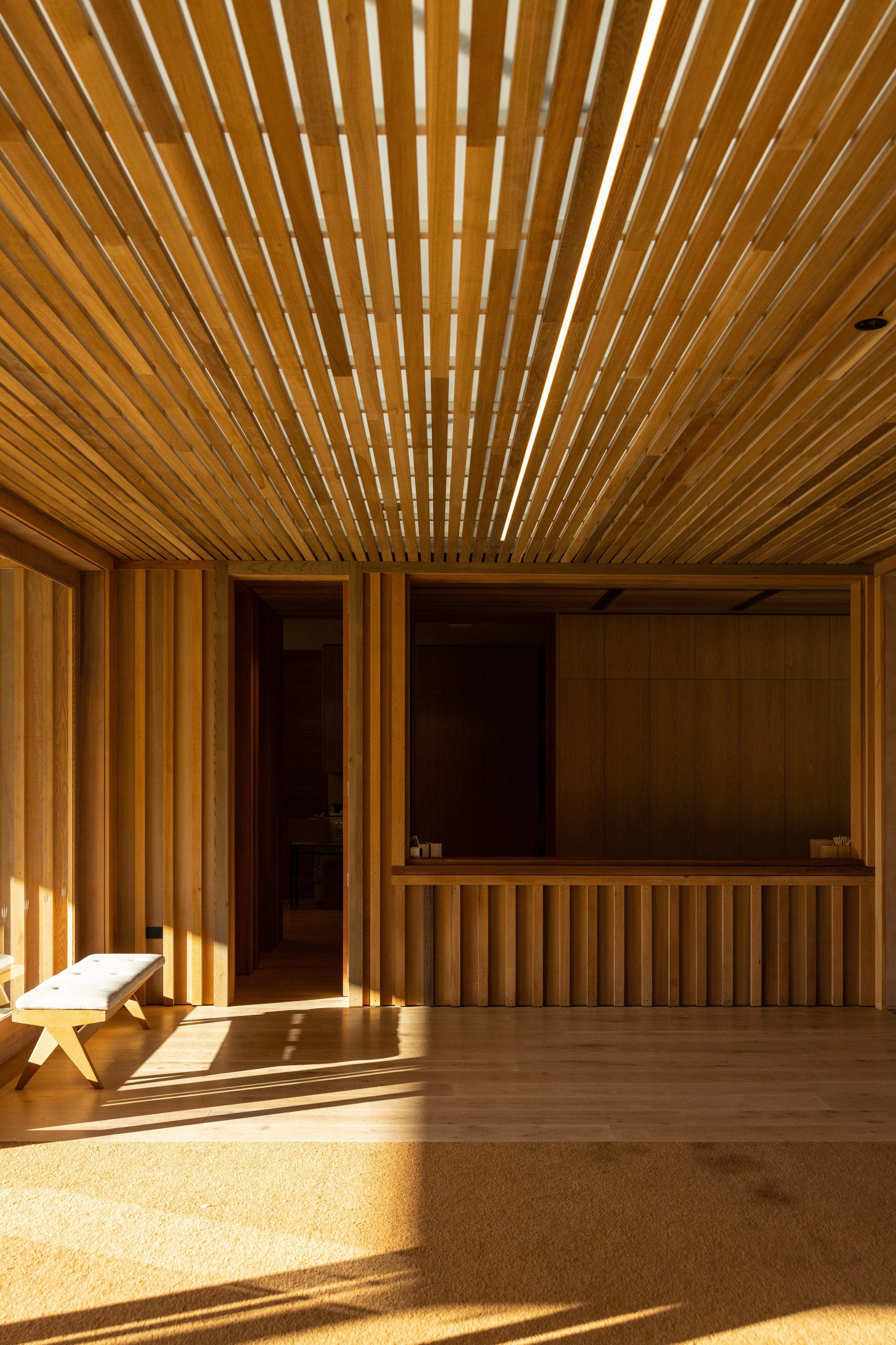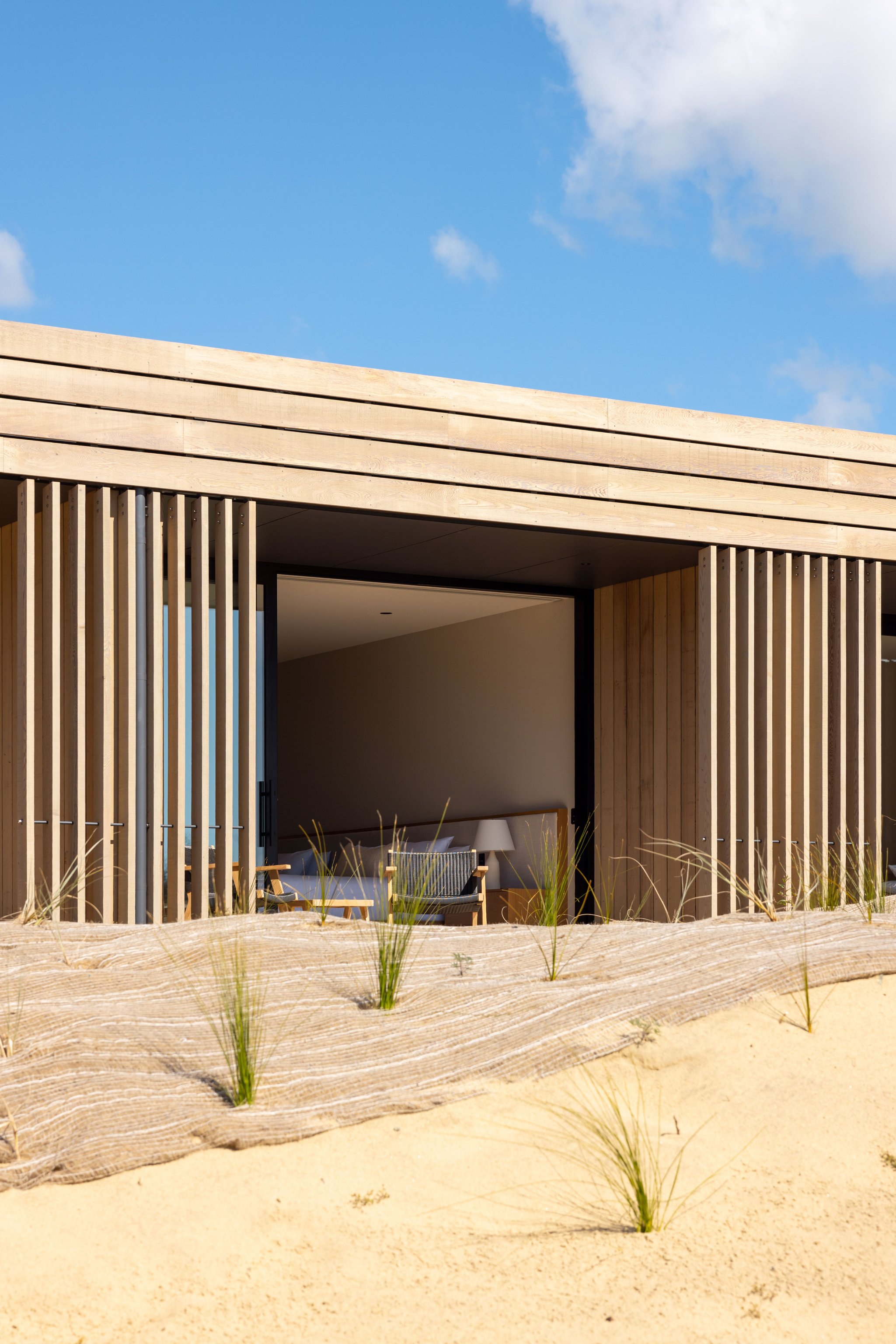 From offshore, there’s nothing but coastline and sky. The resort’s designers were determined that it stay that way, hiding every structure within the contours of the land. Even when you’re there, the place reveals itself slowly. A trail edged with native grasses. A sliver of roofline is barely visible from the sand. It’s a disappearing act, and it works: standing at the water’s edge, you feel like you’re somewhere completely untouched.