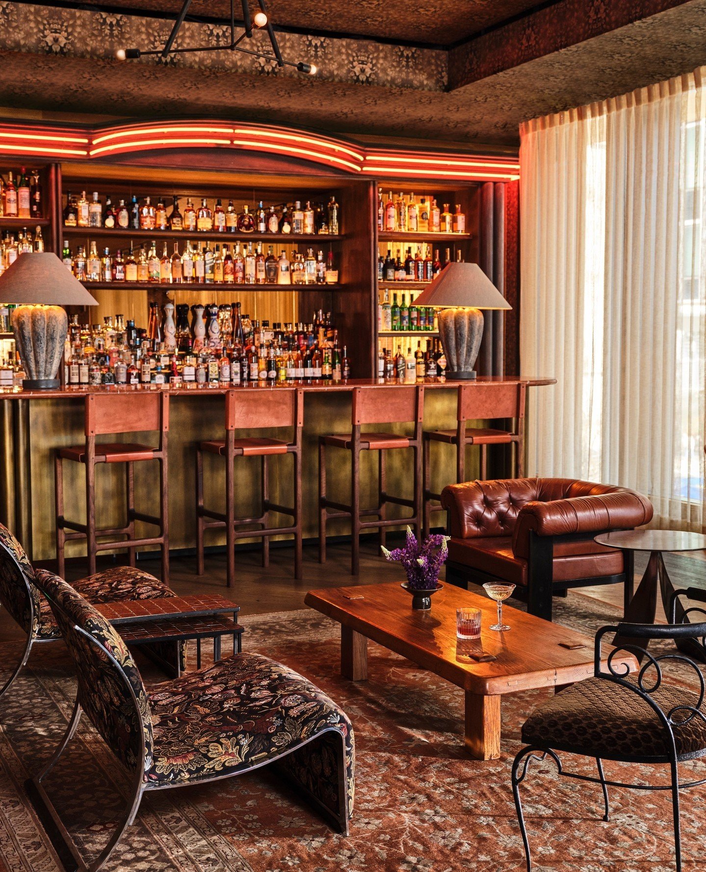 One of Austin-based NoCo Hospitality’s latest ventures, Estelle’s is an upscale social club featuring multiple bars, a restaurant, and even a flower bodega. Situated at the corner of 4th and Colorado, the swanky space is adorned with vintage furniture, mid-century modern art, and a grand staircase that leads to the second floor. The botanical-themed cocktail menu boasts options like the Rosemary Sloe, plus a slew of seasonal sips.