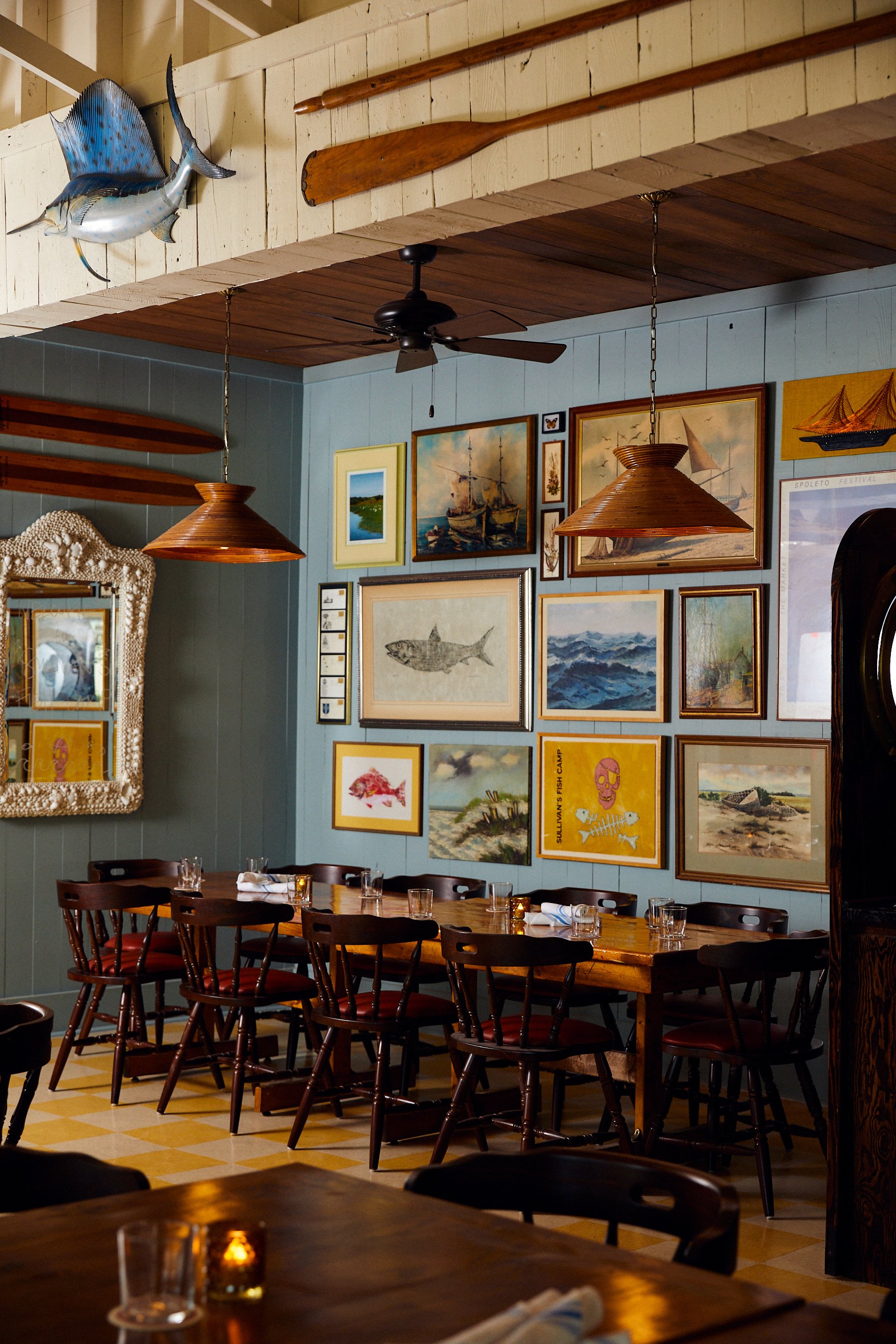 About a 20 minute drive from the heart of Charleston sits the laidback locale known as Sullivan’s Island. This two and a half mile long island offers buzzy storefronts and no-nonsense restaurants; the most recent opening on the island comes from Charleston-based hospitality group Basic Projects in the form of Sullivan’s Fish Camp. Housed in what was once the iconic family-run Sullivan’s Seafood Restaurant, the team collaborated with island residents and local artists to create nautical-themed decorations and furniture. Executive Chef Davis Hood’s menu is filled with fresh, playful iterations of Fish Camp classics, while Bar Manager Jordan Morton’s cocktail program draws inspiration from the 1970’s tiki craze.