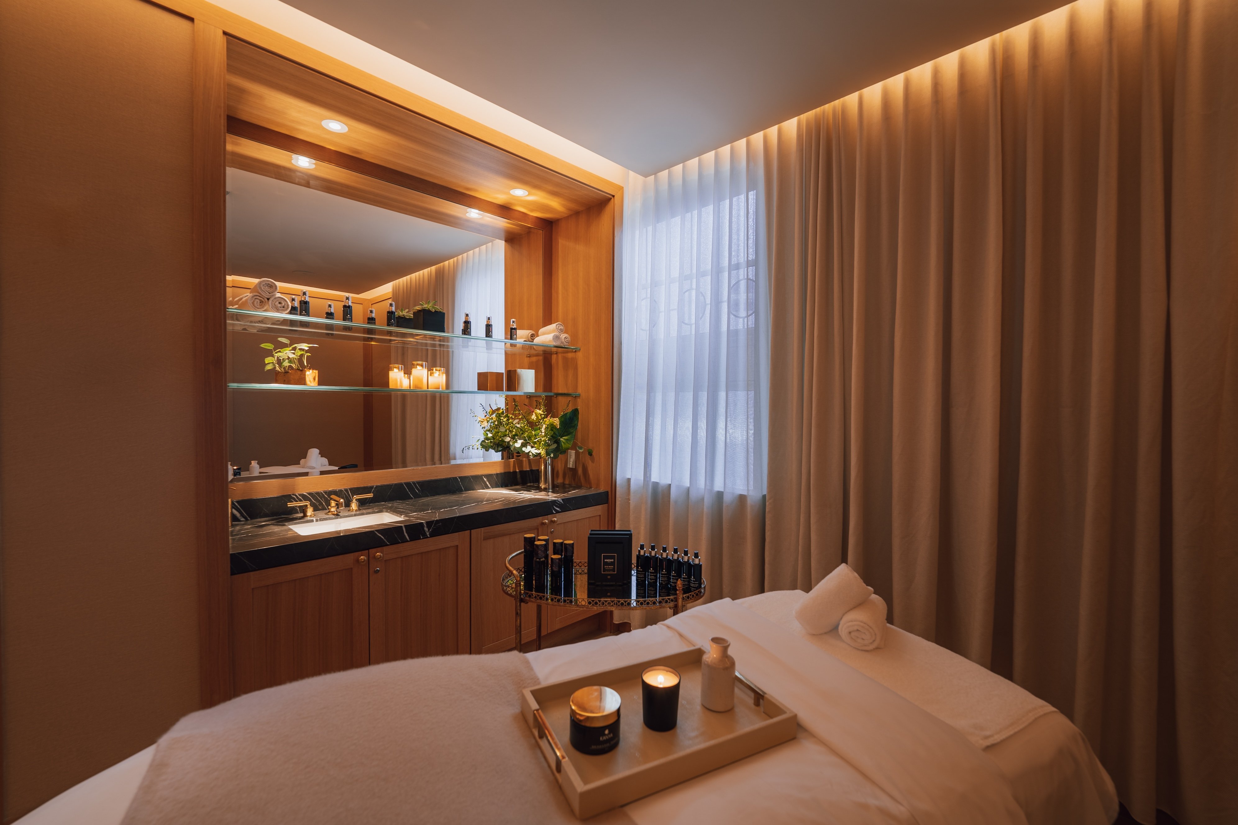 The Casa Cipriani Spa is truly a tranquil retreat secluded within the stay’s iconic location in the prestigious Battery Maritime Building along the waterfront in Lower Manhattan’s Financial District area. Its minimalist waiting room ensures its guests are warmly welcomed with a soothing energy, imbued with a neutral color palette and orchid flowers. A boutique with the spa's preferred product, Knesko Skin, is available for post-treatment shopping.