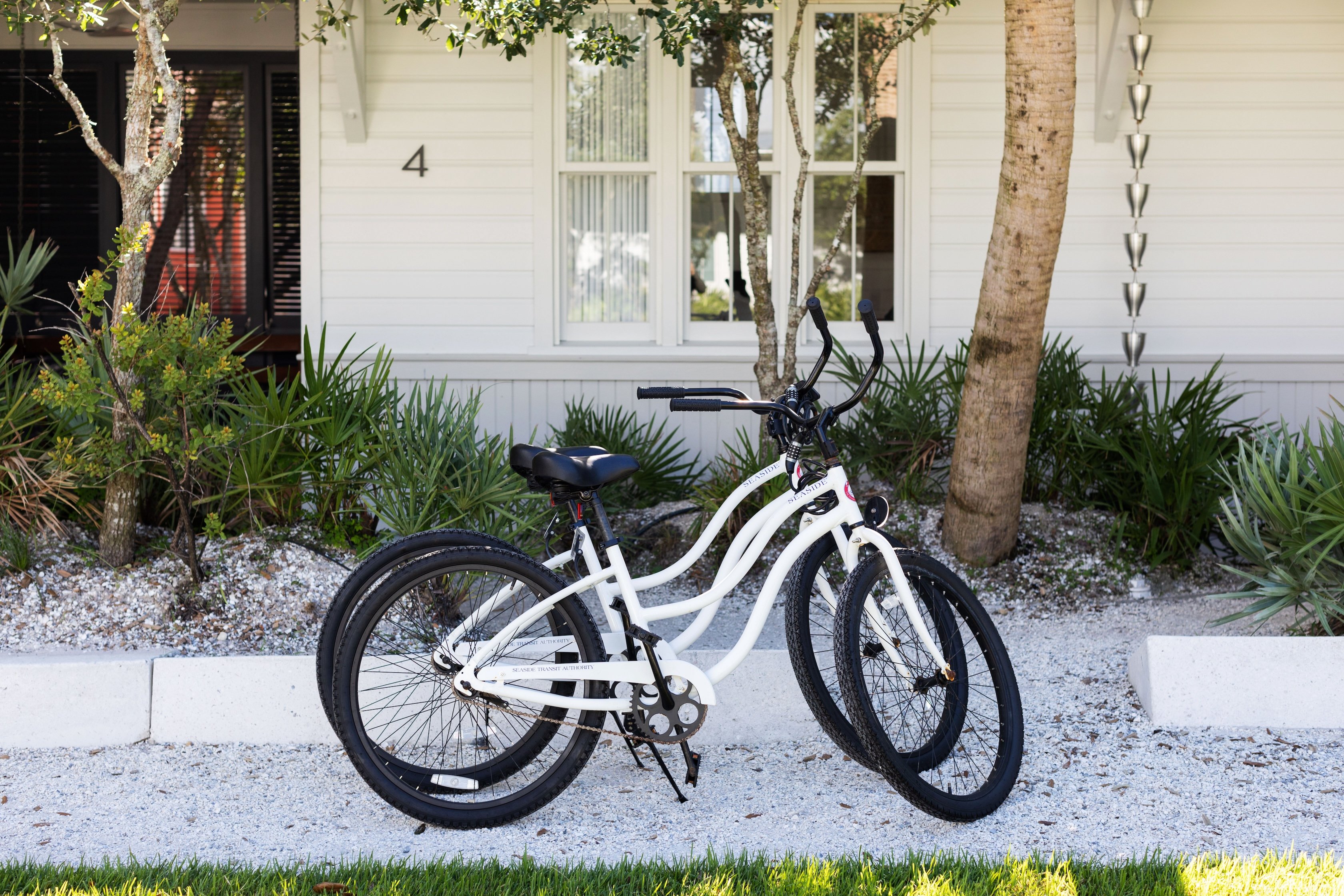 Amenities: An expansive bathroom, Serena & Lily furniture, luxury linens, a private outdoor seating area, espresso machine, TV, on-site parking, complimentary bike rentals from the Seaside Transit Authority, public pool passes, and complimentary beach chairs through Cabana Man.
