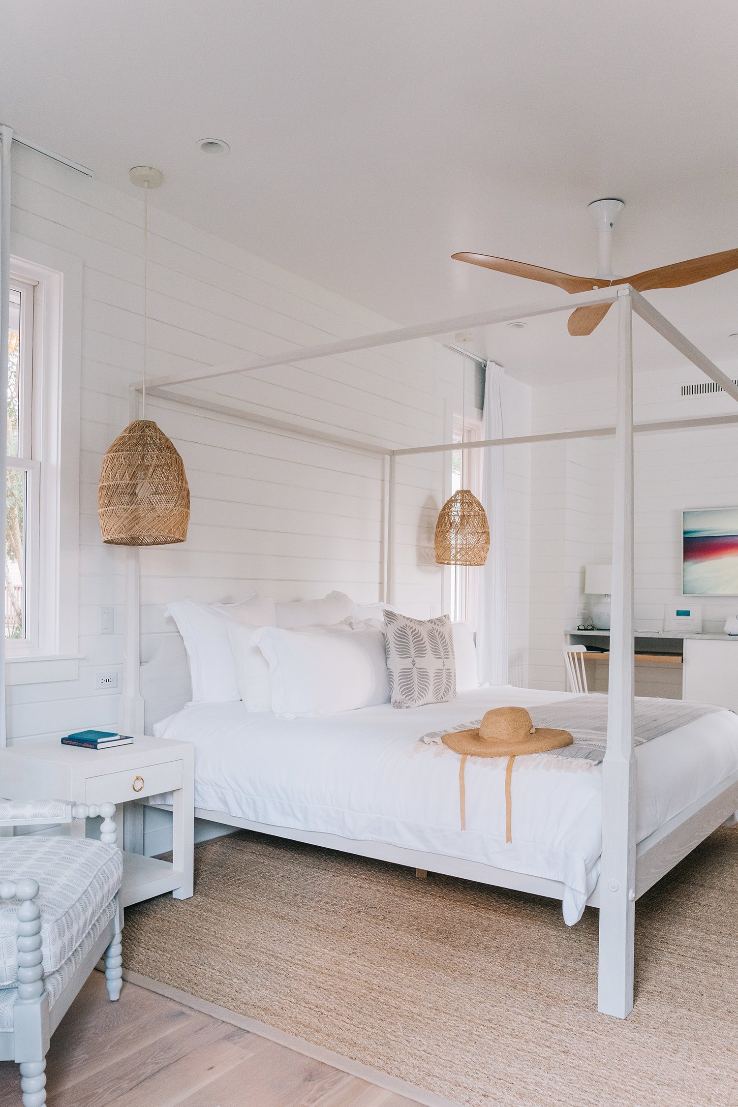 While the scenery in the courtyard and at the beach are tough to compete with, you won’t be disappointed by the view inside your room. Interior designers Erica Pierce and Makenzie Carter of The SEASIDE Style collaborated with local architect Ty Nunn to bring Seaside’s aura into every inch of the property. (Pierce tells us she was also inspired by a memorable stay at the Surfrider Inn in Malibu.)