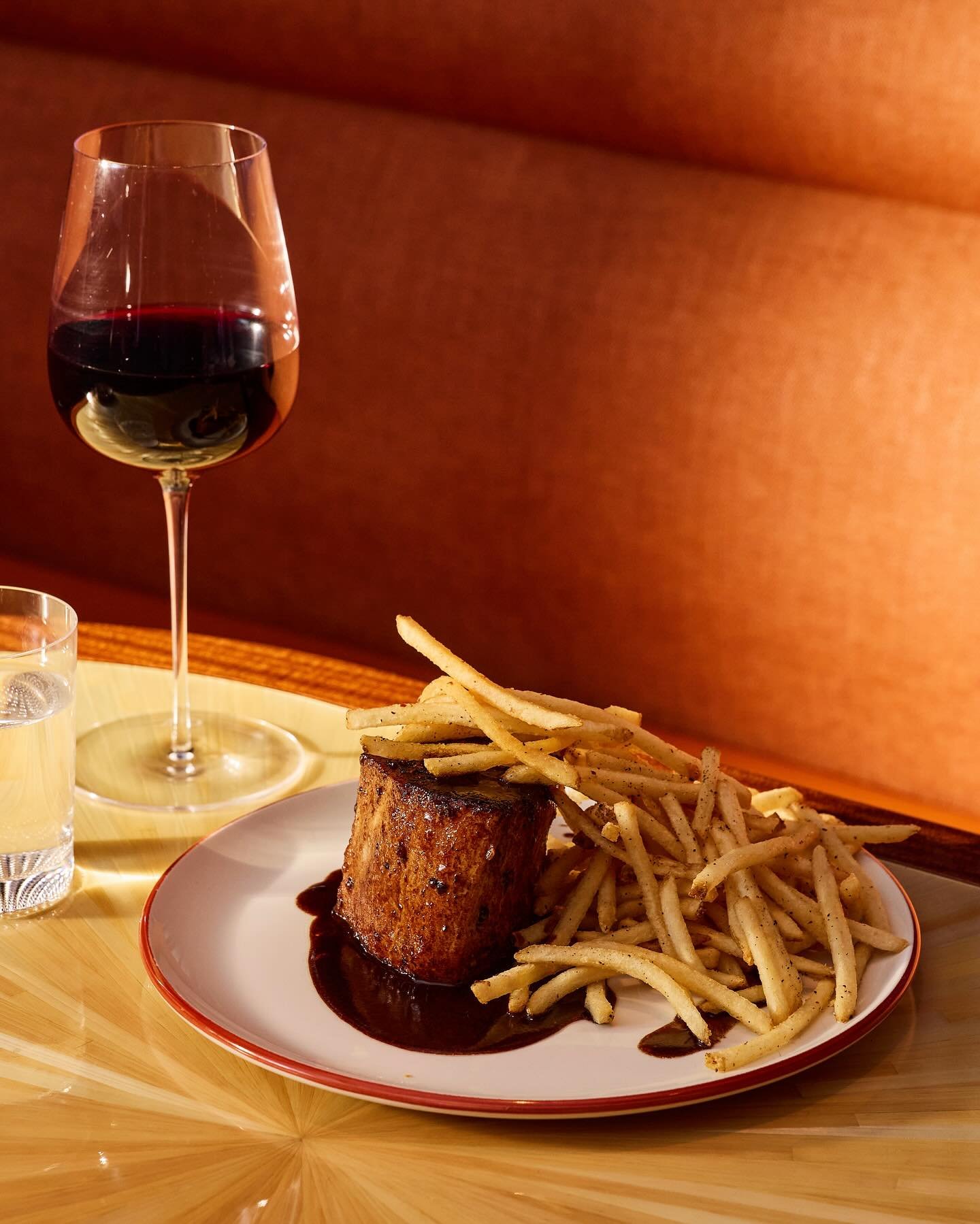 On the ground level is The Otter–the hotel’s signature restaurant, which feels like a seaside escape, channeling Chef Alex’s New England roots through pristine seafood and classic flavors. The Seafood Platter is a must-share, while the Swordfish Steak Frites au poivre and Chopped Gem Lettuce Caesar make a perfect pair for crisp fall evenings.