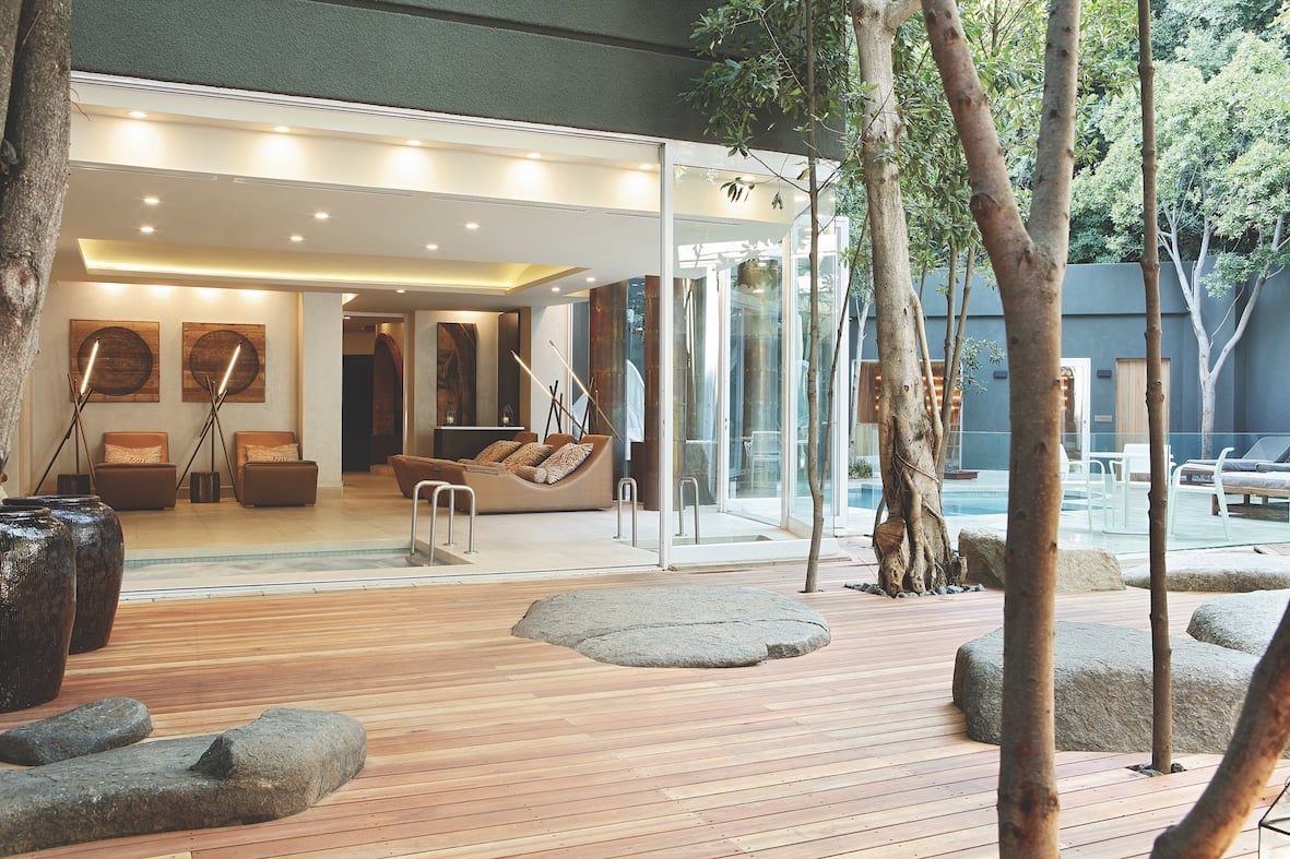Historic and exquisitely manicured, The Saxon is a bit of an anomaly in the Johannesburg hotel scene: there’s no view; there’s no scene; and there’s certainly not a hint of ritz about the place. That’s all part of its infectious, charm, though. While big and roomy, there’s a curvaceous charisma and class to the Saxon’s urban manor estate feel. Thanks to its long drive, enormous gates, lush gardens and the exquisitely private surrounds that make up its trendy home in Sandhurst, the sense of always being constantly a part of an osmotic oasis is part of The Saxon’s enduring appeal. There’s also its historical claim to fame. Before the 10-acre estate was transformed into a hotel, former South African president Nelson Mandela lived here when it was a private home and wrote his autobiography, Long Walk to Freedom.