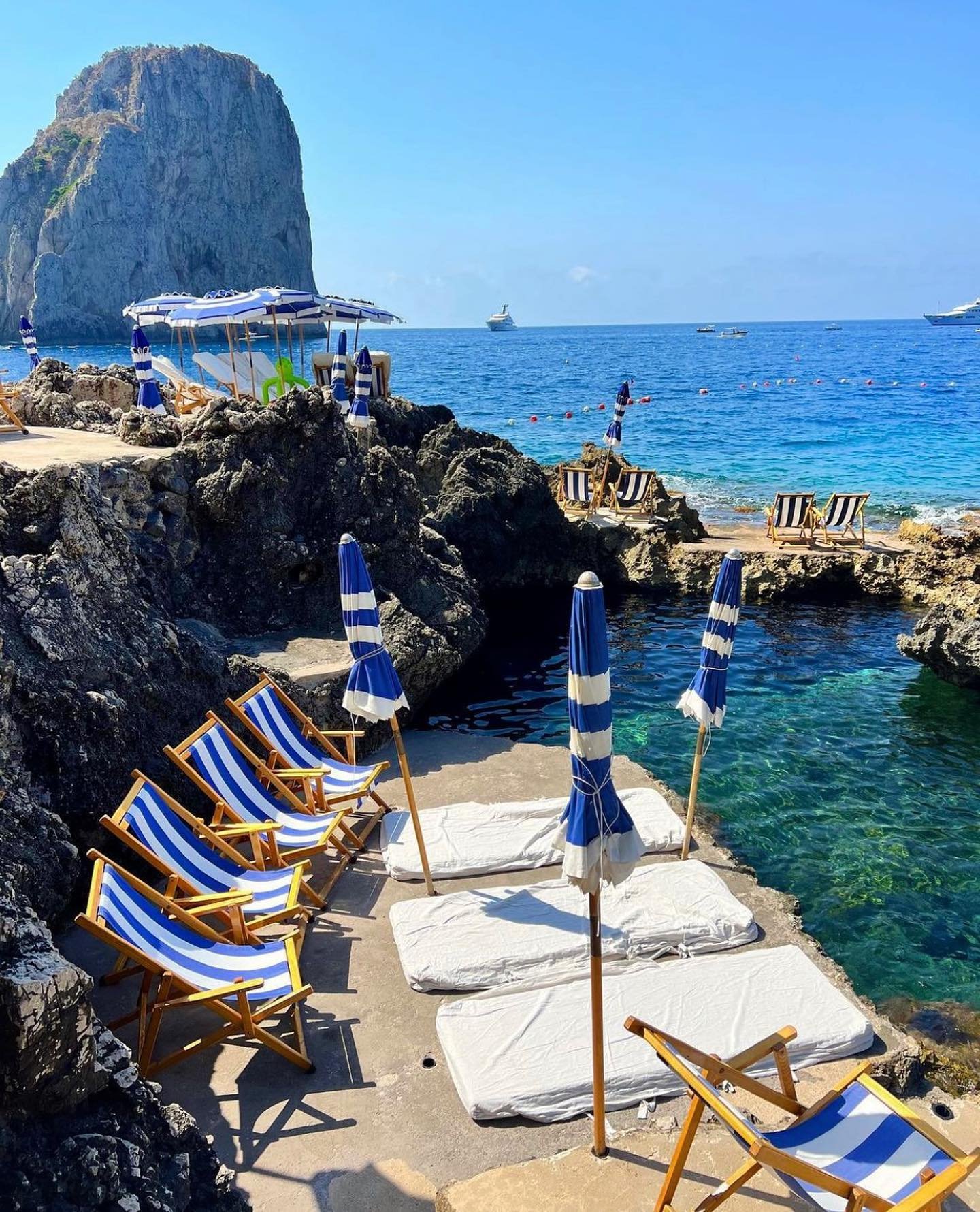 The Amalfi Coast is known for its pretty beaches and exclusive beach clubs, which makes visiting them a must. Fiordo di Furore, a hidden fjord flanked by steep cliffs, is the perfect place for swimming, snorkeling, or basking in the sun. In contrast, Marina di Praia in Praiano is a small pebble beach dotted with vibrant beach clubs and restaurants. In terms of actual beach clubs, be sure to check out Da Adolfo in Positano and La Fontelina in Capri.
