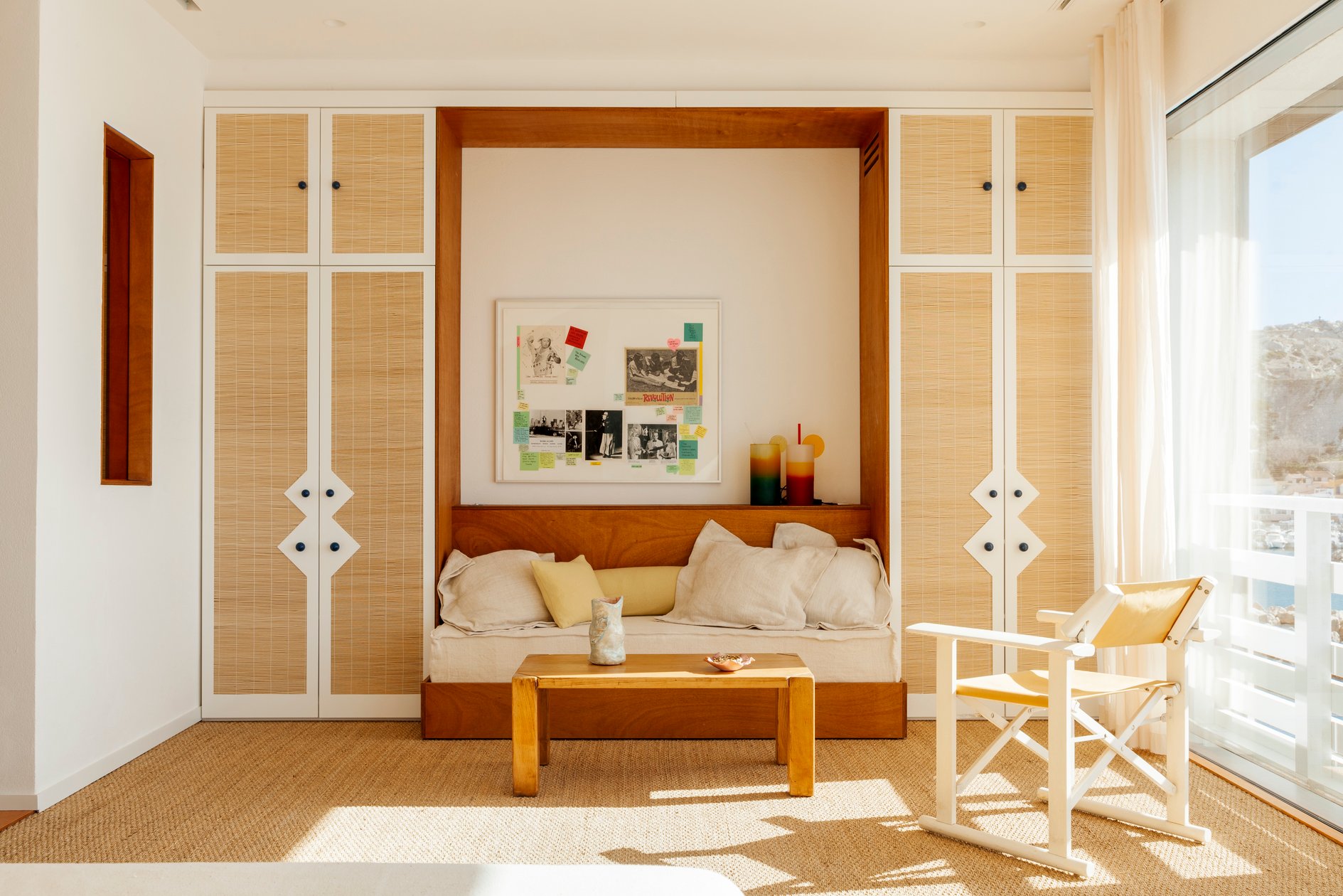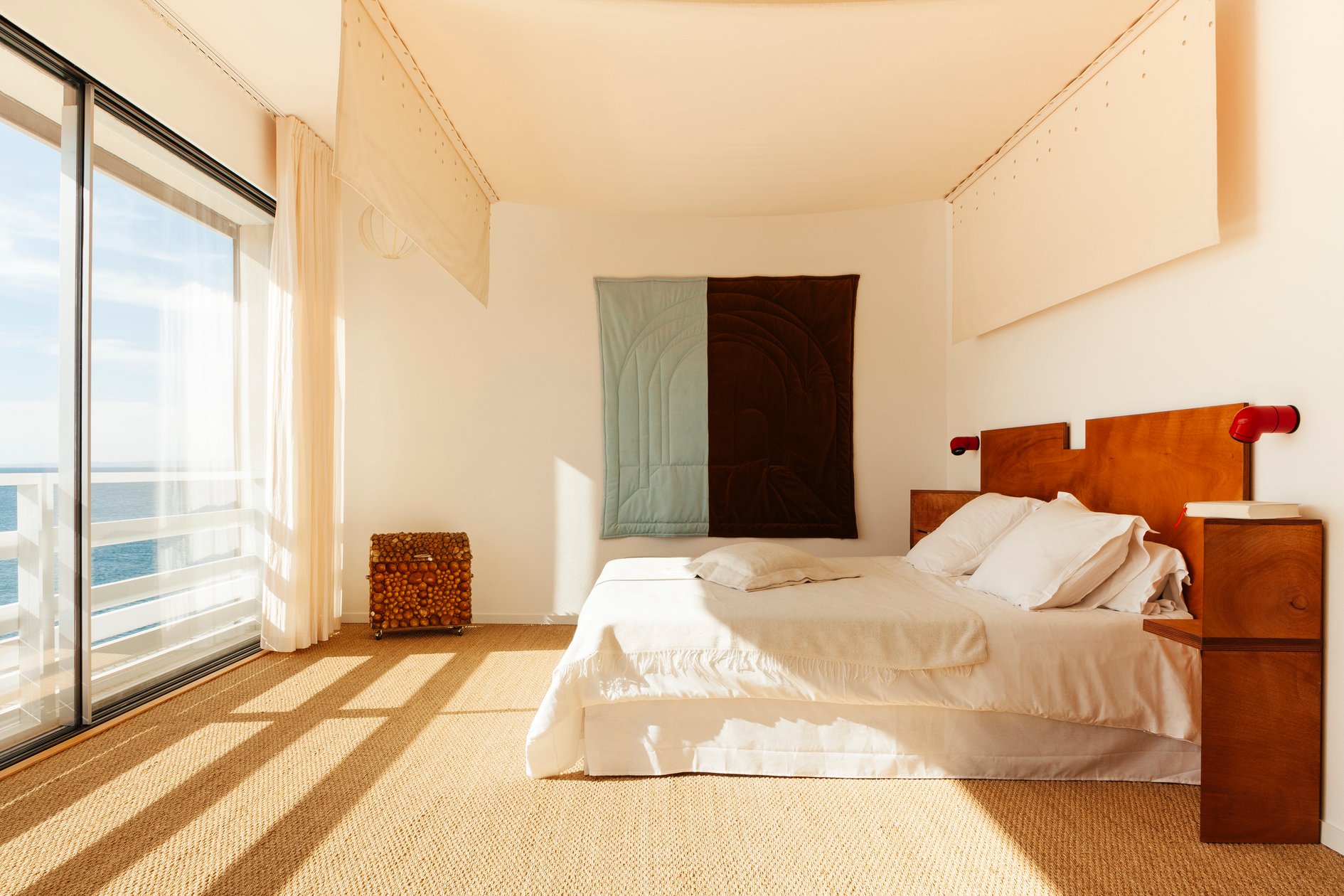 With only eight rooms, the hotel feels like a laid-back beach house you might rent with friends for the summer. All rooms have a sea view and are filled with natural light, inviting guests to sit back, pick up a book, and listen to the sound of waves crashing right in front of their window. At golden hour, the light turns honeyed and soft, wrapping the room in a calm warmth.