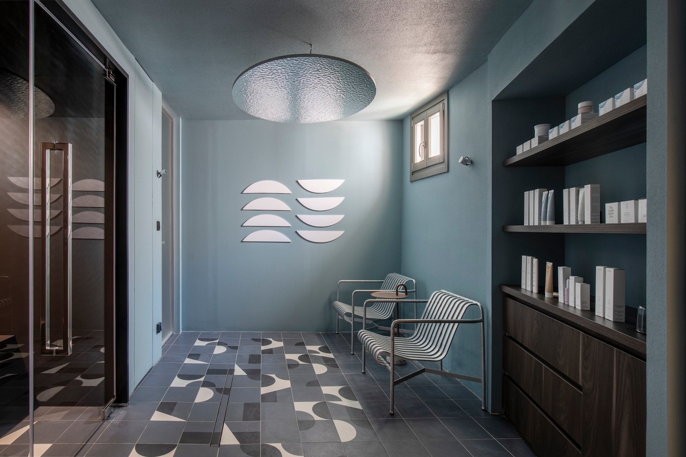 For those seeking to enhance their relaxation experience, the Andelea Spa offers signature facials and full-body therapies infused with Ariadne products—a Greek-born line of high-end skincare that embraces a refined approach to beauty science. Soothing blue-gray tones adorn the treatment and steam rooms, providing a calming contrast to the property's energetic vibe.