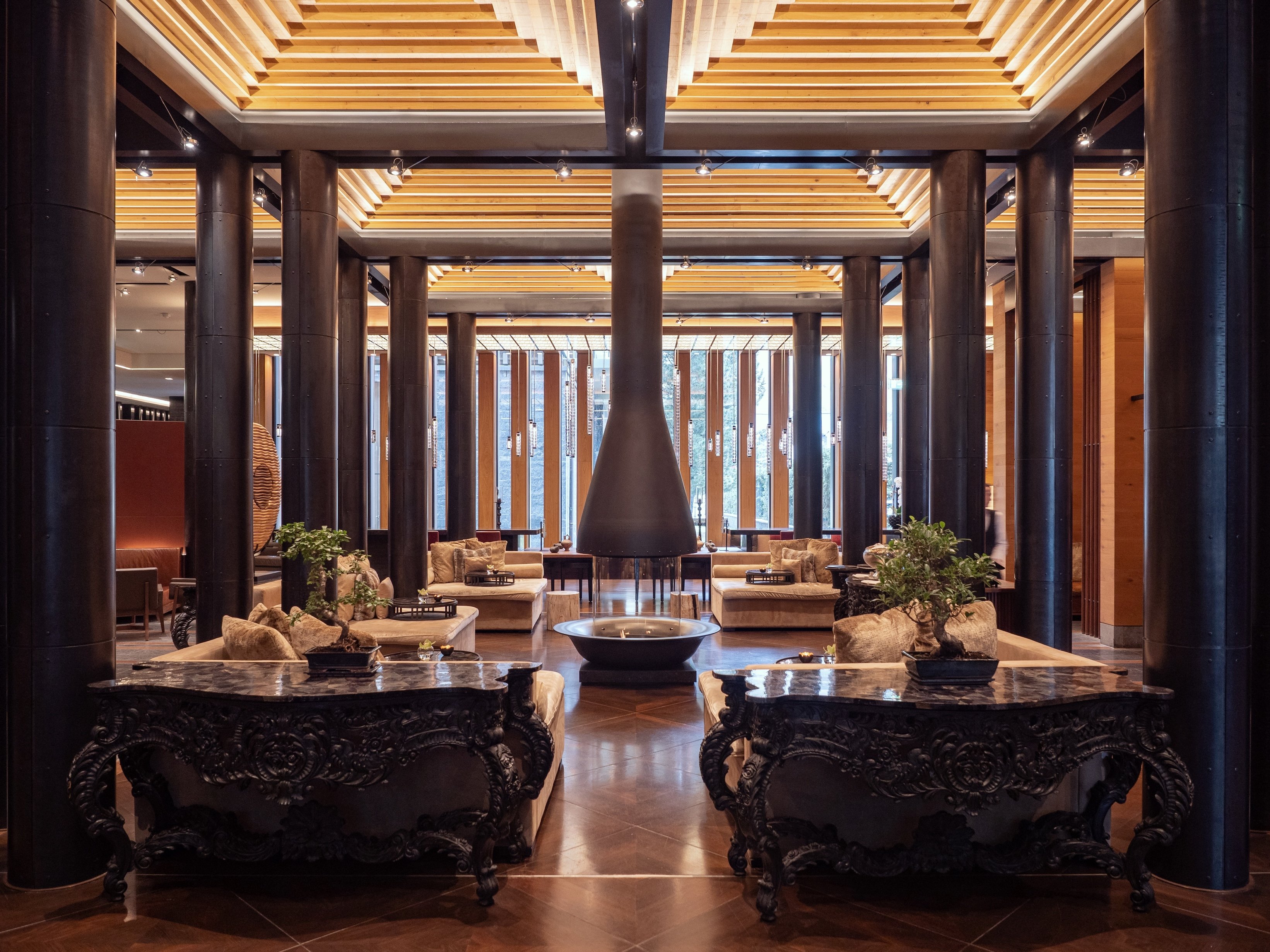 The Chedi Andermatt blends alpine tradition with contemporary flair. The wood-framed exterior sets a tone of understated elegance. Inside, Jean-Michel Gathy’s design is a symphony of mountain-town luxury and warmth—the kind of place you’re eager to get back to after a chilling day of skiing. The grand lobby, with its vaulted ceilings and monumental fireplace, creates a dramatic entrance that makes every guest feel swish. Handcrafted wooden panels and artisanal stonework are complemented by plush furnishings, ensuring the aesthetic is both sophisticated and inviting.