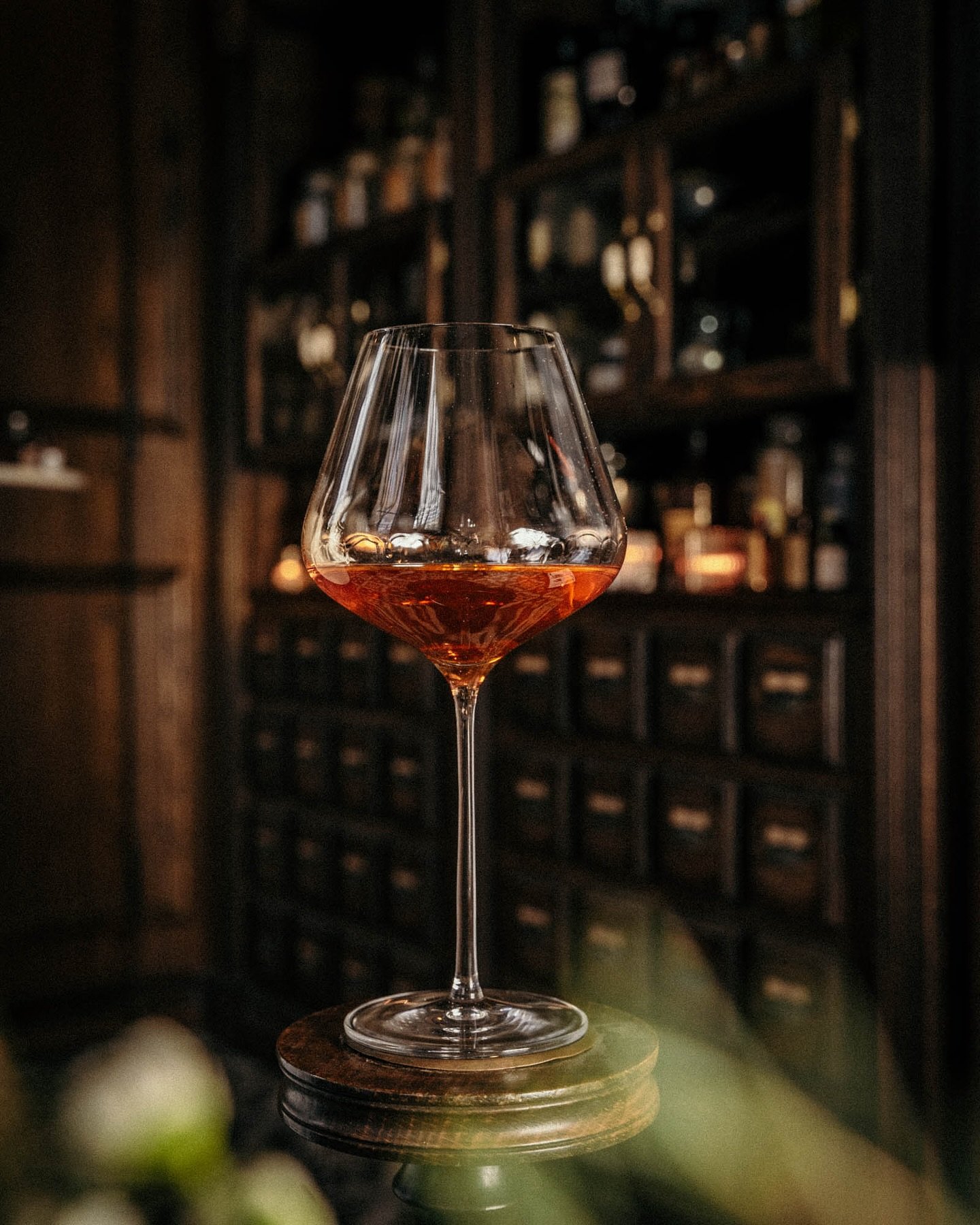 Upon walking in, you'll be transported to 1900's Paris. The mind behind this bar is no other than Frankie Solarik, an author and judge on Netflix's Drink Master. The design was inspired by the apothecaries of the Art Nouveau era, with its wooden walls, old-timey jars, and antique decorations placed around the bar. Apothecaries then used fresh and dried herbs and flowers to create tinctures, medicines, and cures. Like that time, bartenders here are crafting each drink like it's art. Mixologists embody the Méthode Classique, muddling herbs and spices in real-time, giving guests an experience to savor and enjoy.