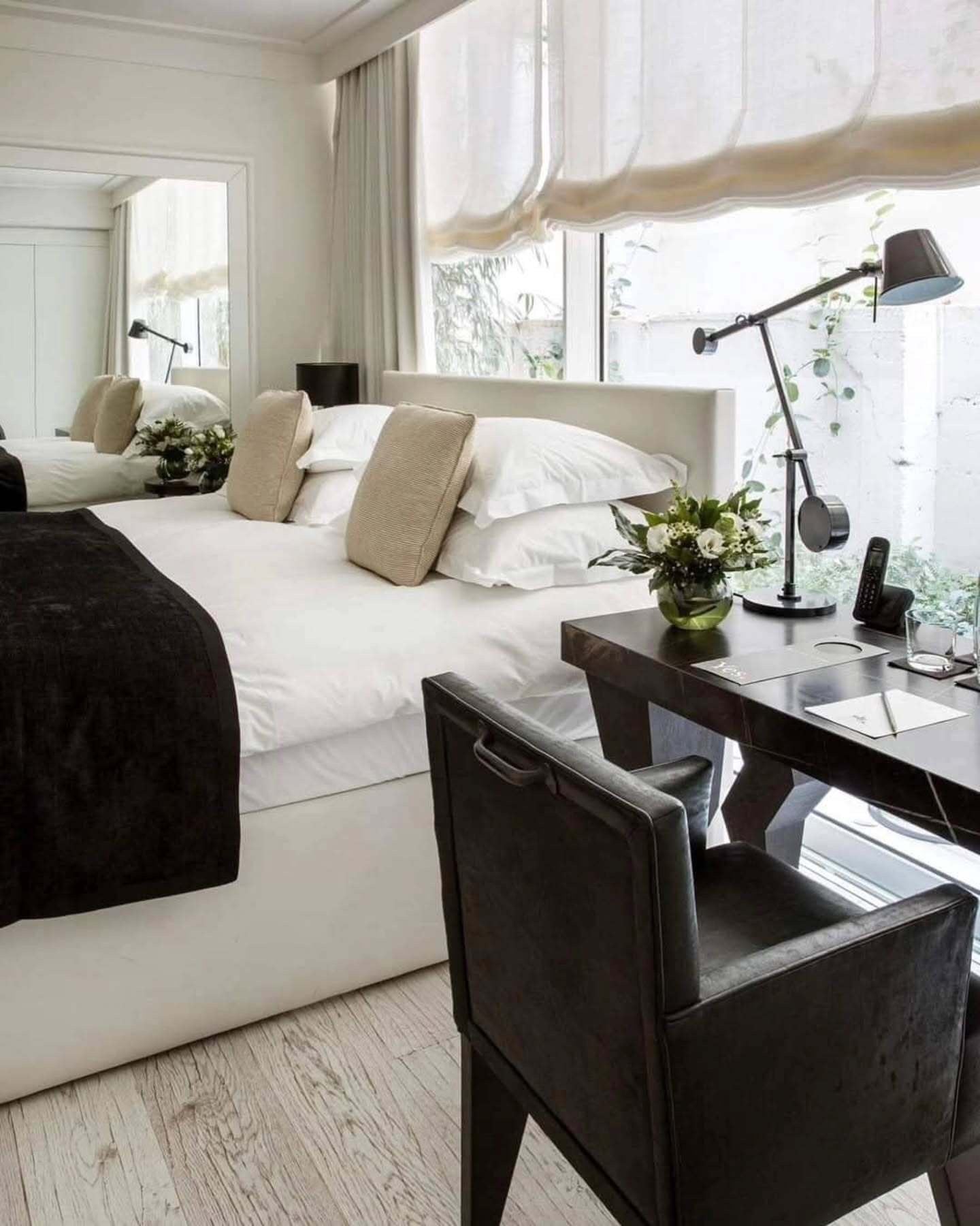 Our favorite thing about the hotel? What I love most about White Villa is its simple, Le Corbusier-inspired design—the airy, white-on-white rooms, the spiral staircase at the heart of the house, and the rooftop and front porch are all pluses.