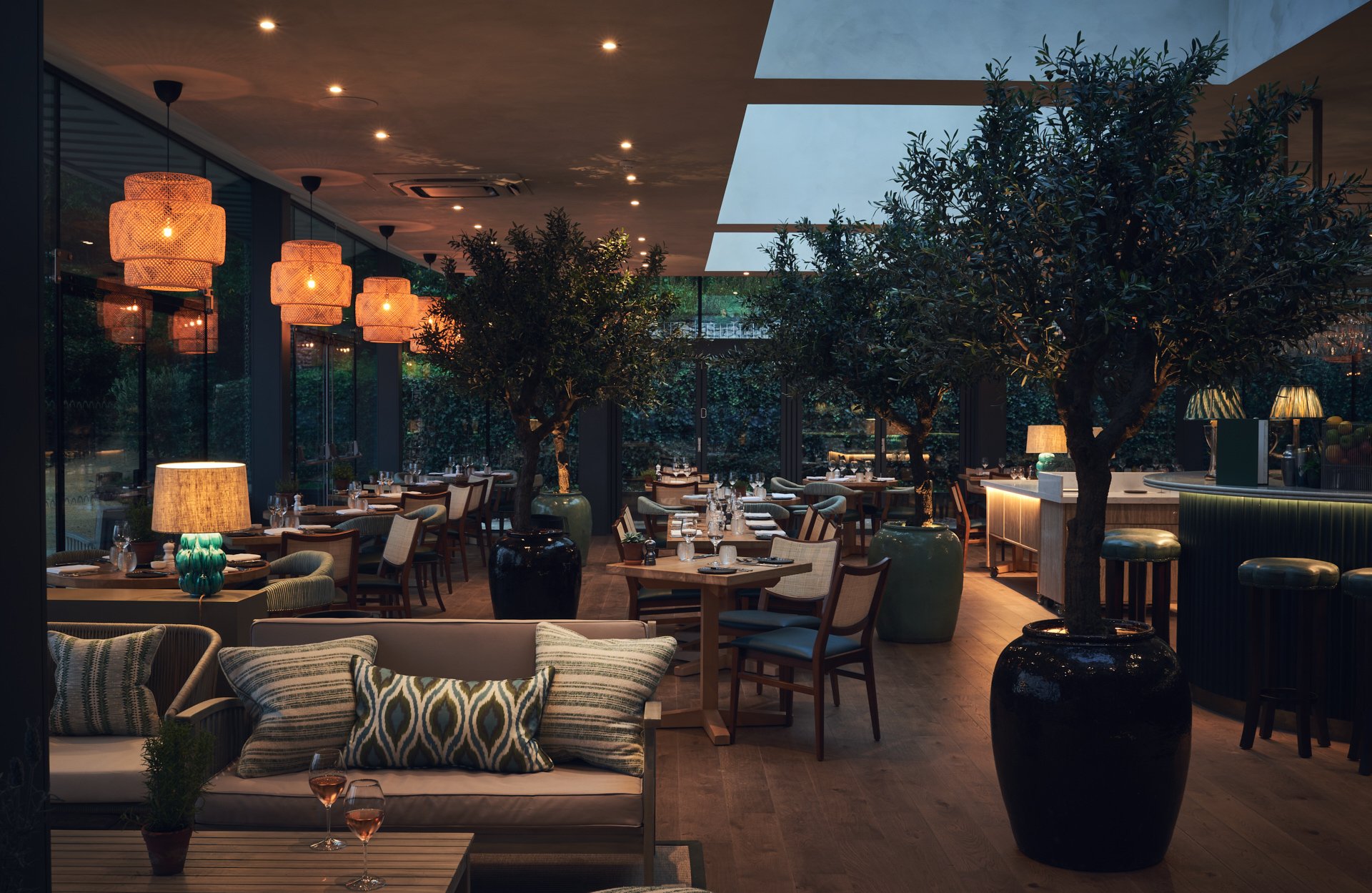 The inside of the place is just as pastorally sexy. Interior designer Isabella Worsley is the woman behind the trendy refresh of the old 19th-century gaff built originally by H. J. Stevens for John Goodwin Johnson, a local magistrate. The best way to sum up the look, in a word, is “kaleidoscopic.” Patterns, colours, and all shades of English glow up give the entire place a fine dose of eccentricity that is rare in this part of The Midlands (that’s Middle England to you Americans). Think London maximalism meets the shires, but with whimsical, romantically charged taste and plenty of shadow play come sunrise and sunset.